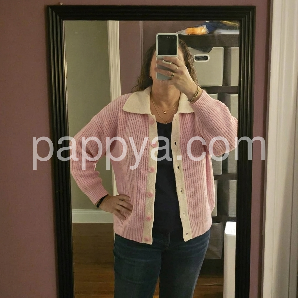Yes!It runs true to the garment size chart please choose your size based on your measurements.This sweet pink collared long sleeve cardigan is the perfect addition to any wardrobe. Made from high-quality materials, it offers both comfort and style. Its versatile design allows for easy pairing with any outfit, making it a must-have for any fashion enthusiast. Embrace comfort and sophistication with this cozy sweater.