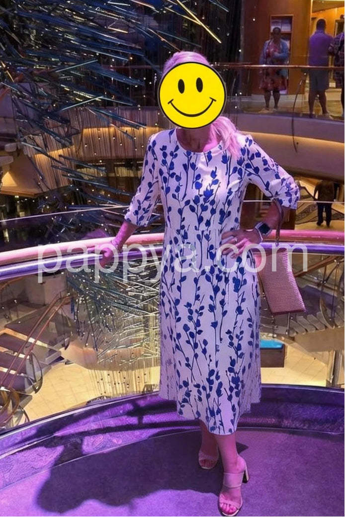 Yes!It runs true to the garment size chart please choose your size based on your measurements.Embrace the serenity of seaside living in this Coastal Blue Botanical Print Midi Dress, a dreamy and elegant piece that captures the essence of Mediterranean charm. Crafted from lightweight, breathable fabric—likely cotton or linen blend—this midi dress features a crisp white base adorned with a delicate all-over print of navy blue leafy vines and botanical sprigs, evoking the beauty of coastal flora. The relaxed A-line silhouette flatters every figure, while the high waist and gentle gathering create a soft, flowing shape that moves gracefully with you. Short sleeves and a round neckline offer timeless comfort and ease, perfect for warm days by the sea. Designed with functional side pockets, it’s both stylish and practical—ideal for strolls through whitewashed villages, beachside brunches, or summer vacations.