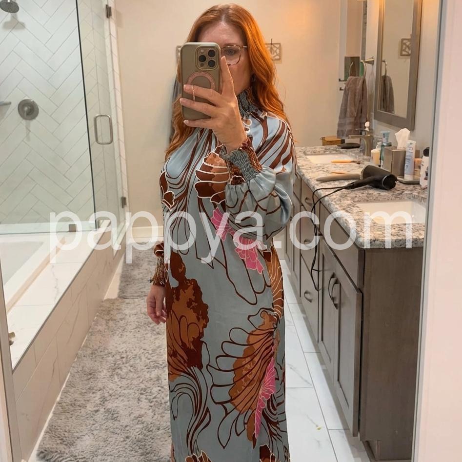 Popular Long Sleeve Print Maxi Dress