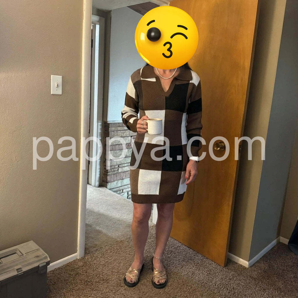 Yes!It runs true to the garment size chart please choose your size based on your measurements.Introducing our Brown V-Neck Long Sleeve Mini Dress. Made from high-quality materials, it's designed to provide both style and comfort. Perfect for any occasion, this dress features a flattering v-neckline and long sleeves for a chic and elegant look. Upgrade your wardrobe with this versatile piece!